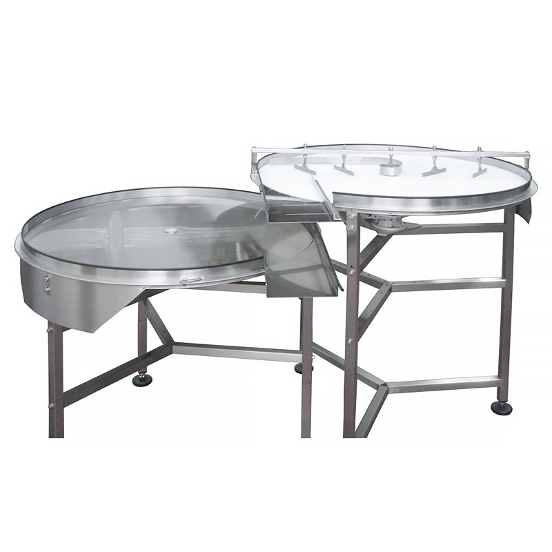 Matching to your labelling machine, we also supply the matching task and / or collection plates in different sizes (700mm + 1000mmm + 1200mm). Special sizes on request. The reception tables are made of stainless steel and adjustable in the rotational speed.